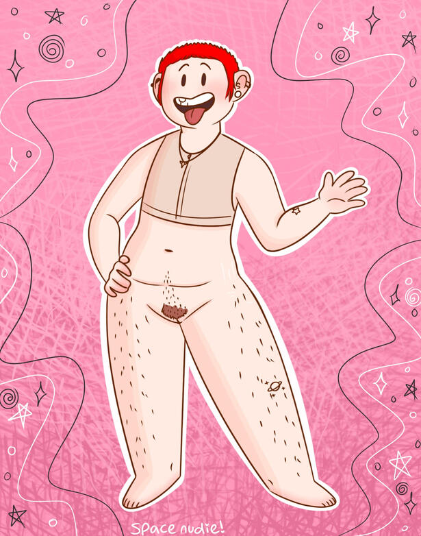 I’m the artist behind SpaceNudie. I’m a queer transmasc artist in my 20s and I’ve been making art for most of my life. I currently have two clothing optional webcomics called Glow Party (available on bluesky and comicfury) and Valentine (available on Planet Nude).My commissions are currently mostly closed. I plan to potentially fully open them to the public in 2026.At the moment I currently live in a state with no clothing optional places (literally can’t find a single one) and I don’t currently live in a clothing optional household either. As a trans person I’m a bit hesitant to go to most nude places anyways unfortunately. I mainly just hang out nude in my room or when home alone. Space Nudie gives me a chance to interact with the nudist community even when i’m not able to do much in real life yet (one day though!).I use Procreate Pocket to draw/animate all of the digital art I create. I draw everything with my finger, but I have been considering getting a tablet at some point.I love drawing characters having fun, being comfortable and nude, and doing fun nude outdoor activities… all things I hope to do one day!Hope y’all like the doodles and comics I make, thanks for checking it out!Edit: I do plan on adding other links/sections here! Specifically featuring different kinds of art I make, not just nudist digital art. The sections will be things like sculptures and traditional paintings and drawings.